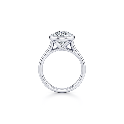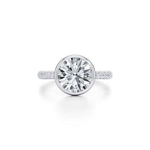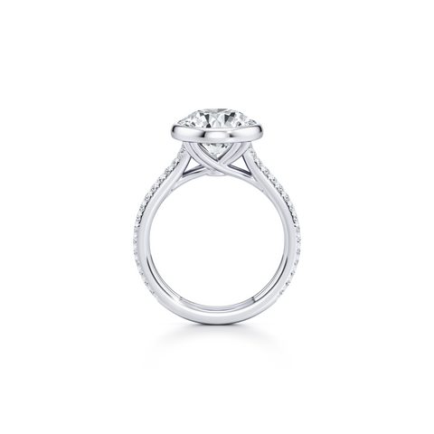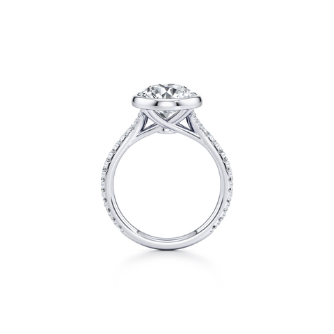 Classic elegance, made for the modern woman. This Audrey solitaire engagement ring is handcrafted with a solid high-polished band to hold the hand-selected lab diamond center stone. Diamond pavé lines the bridge and gallery to create a hidden halo that optimizes brilliance from every angle. Formerly known as Colette.