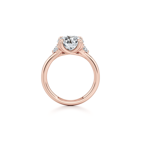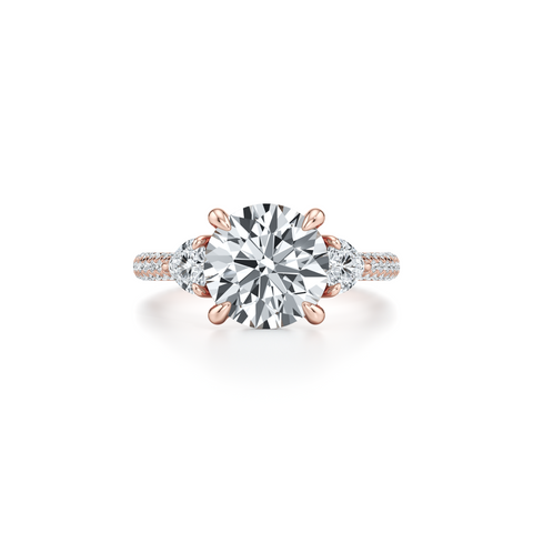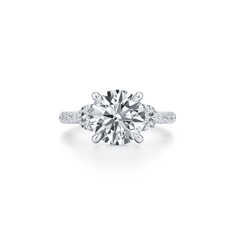 Chelsea Heart Three Stone Engagement Ring - One Row Pave Band