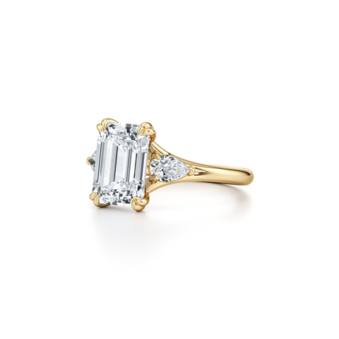 Elle Pear Three Stone Engagement Ring - High Polish Single Band