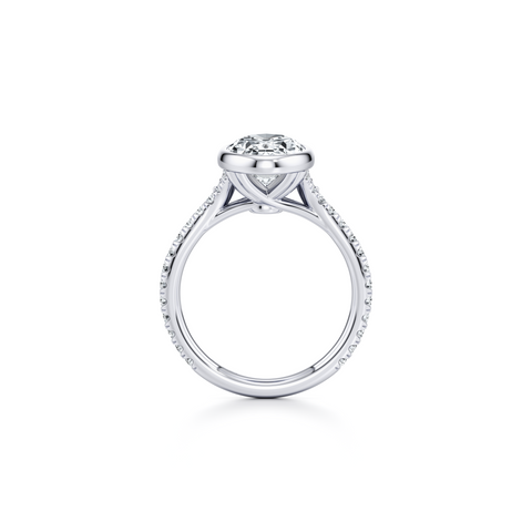 Elle Bezel Solitaire Ring - One Row Pave Band