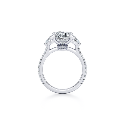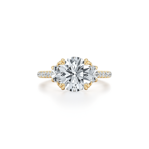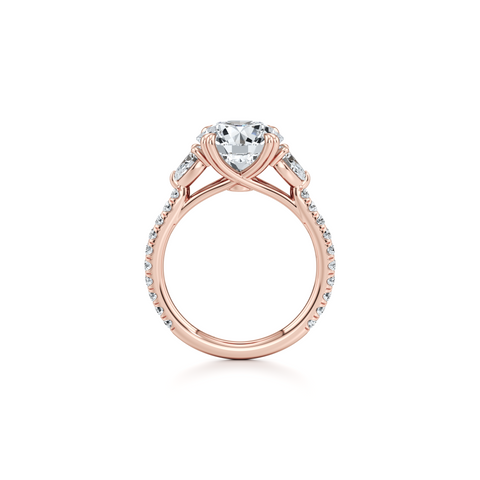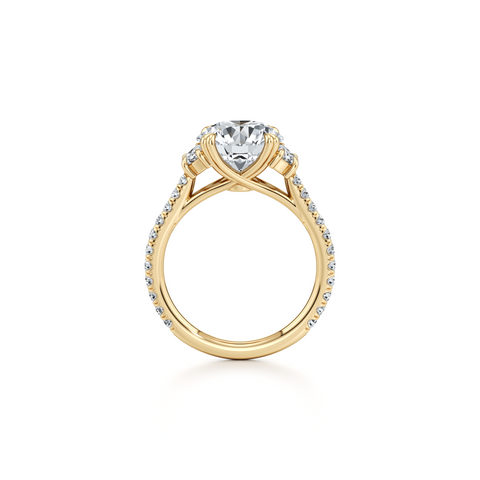 Elle Half Moon Three Stone Engagement Ring - One Row Pave Band