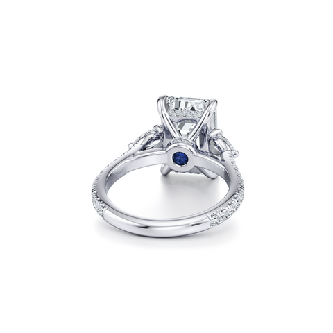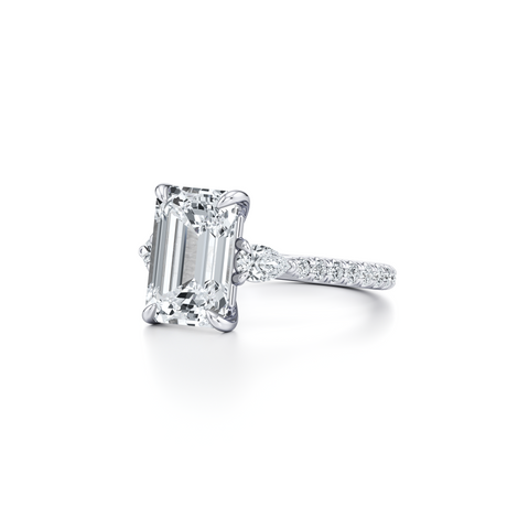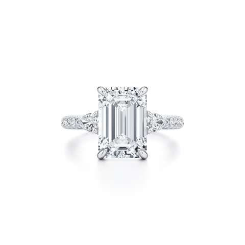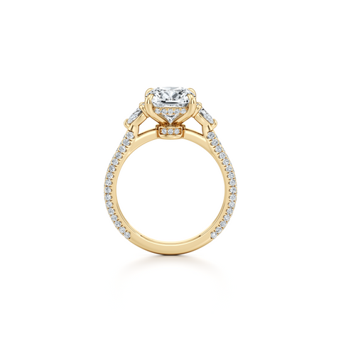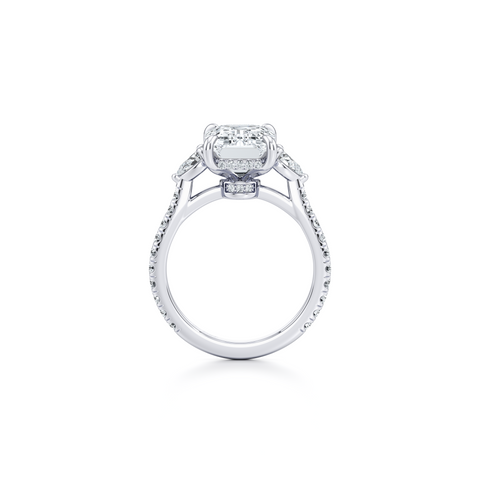 Elle Trapezoid Three Stone Engagement Ring - One Row Pave Band