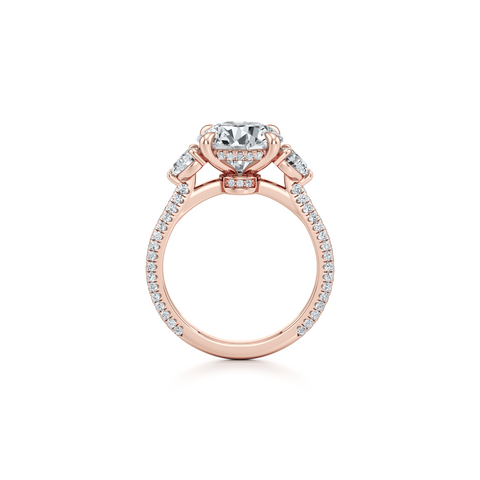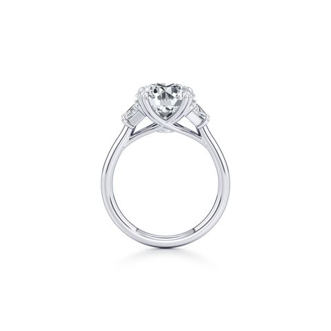 Chelsea Heart Three Stone Engagement Ring - Three Row Pave Band