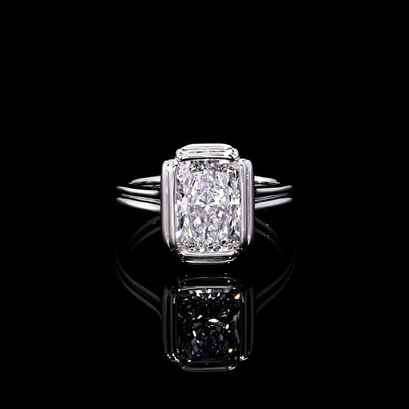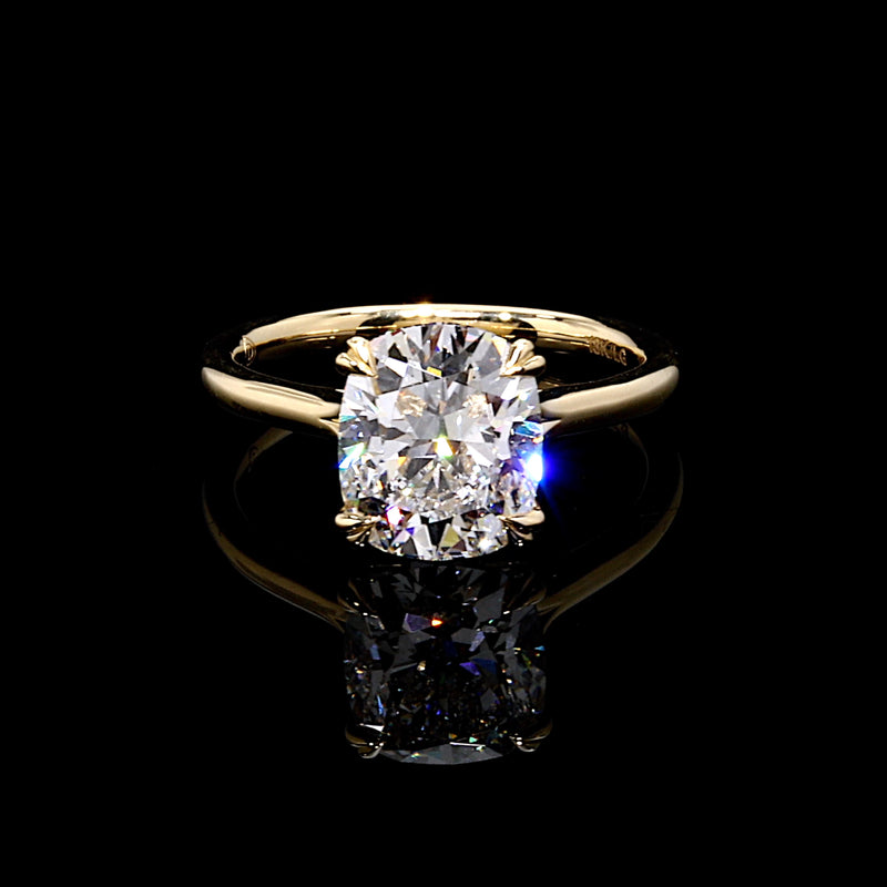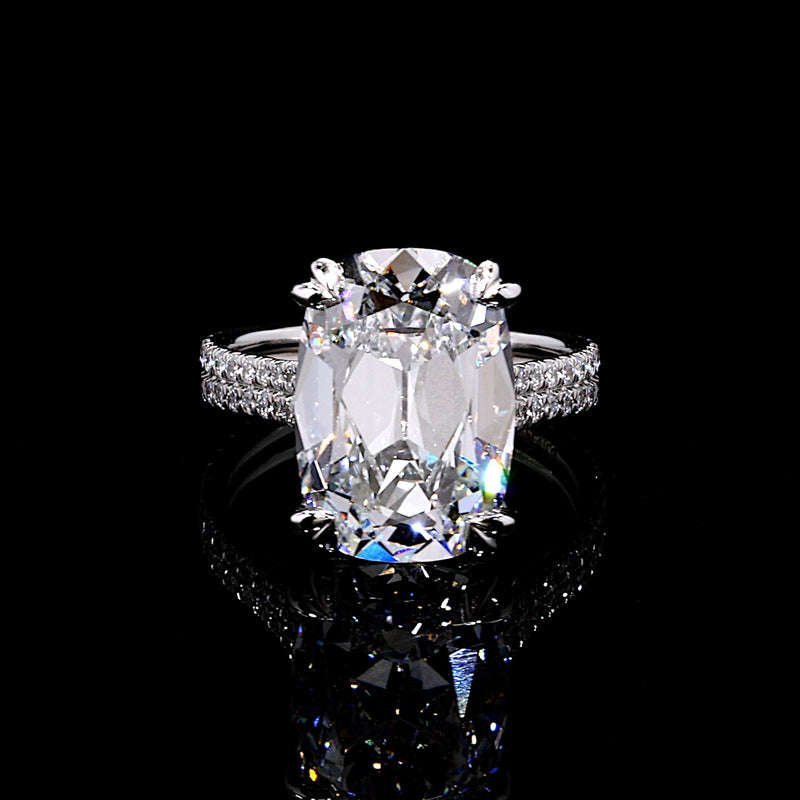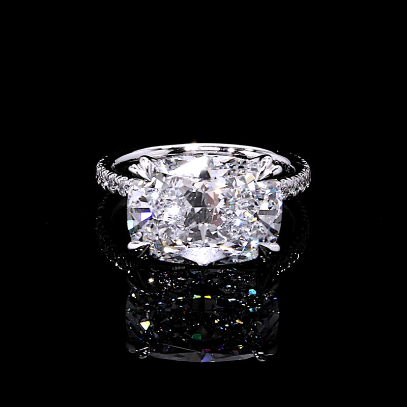 Looking for a ring that embodies timeless beauty? Consider the Audrey Pear Solitaire Lab Diamond Engagement Ring. This engagement ring showcases a 2.00 ct. pear lab diamond center stone, set in our signature pavé setting. For the partner who craves a unique and fluid design, explore the Elle Cushion Three Stone Lab Diamond Engagement Ring. This stunner is distinctively crafted with a 5.01 ct. cushion cut lab diamond center stone and matched-set of cushion stones side stones. This ring is seamlessly held in an exclusive double-prong setting with a dual-row high-polished band that perfectly exudes “Elle.”