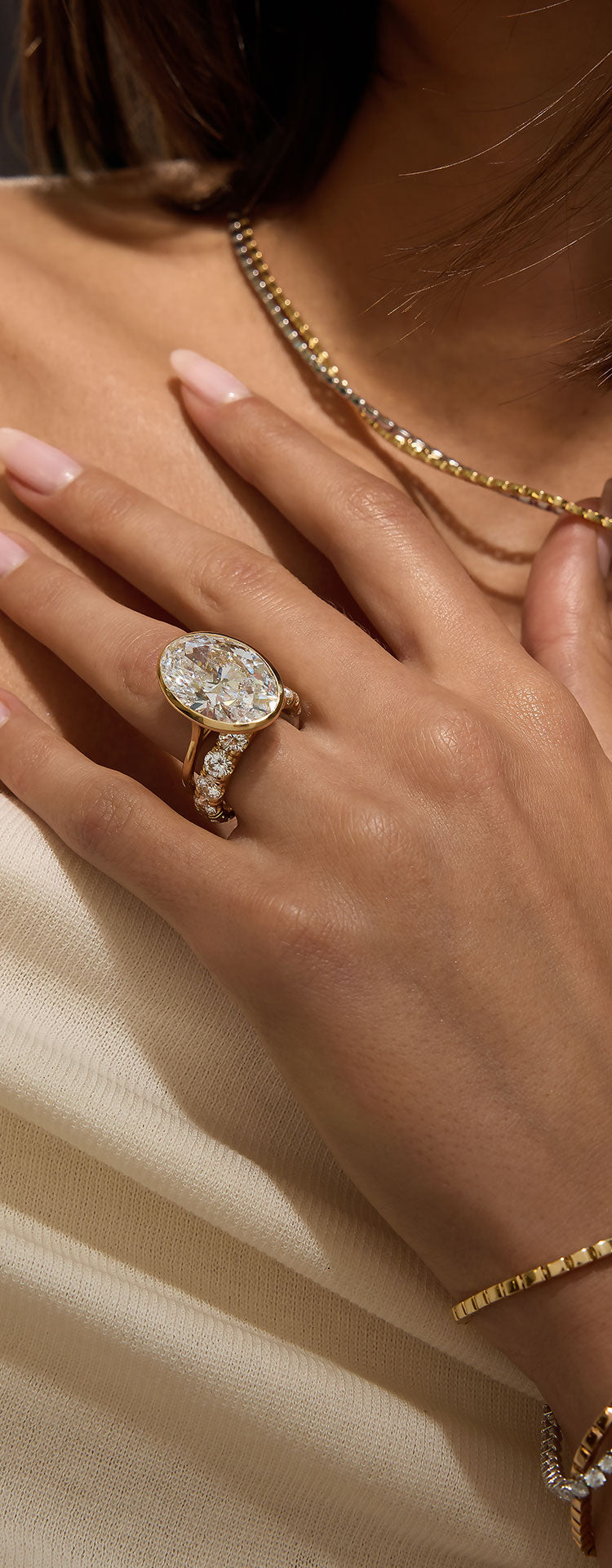 Jean Dousset’s bezel-set engagement rings are exclusively crafted with premium lab-grown diamonds, hand-selected for their exceptional brilliance and quality. Our experts select only the top 1% of lab-grown stones available on the market for our diamond jewelry in order to meet the highest standards in cut, clarity, and performance.