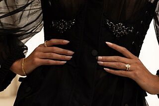 From our most timeless capsule, Audrey’s elegant aesthetic stands the test of time. This solitaire engagement ring features a lab diamond center stone, set in our signature pavé setting. Lab diamond pavé lines the bridge and gallery to create a hidden halo and maximize brilliance. Formerly known as Eloise.