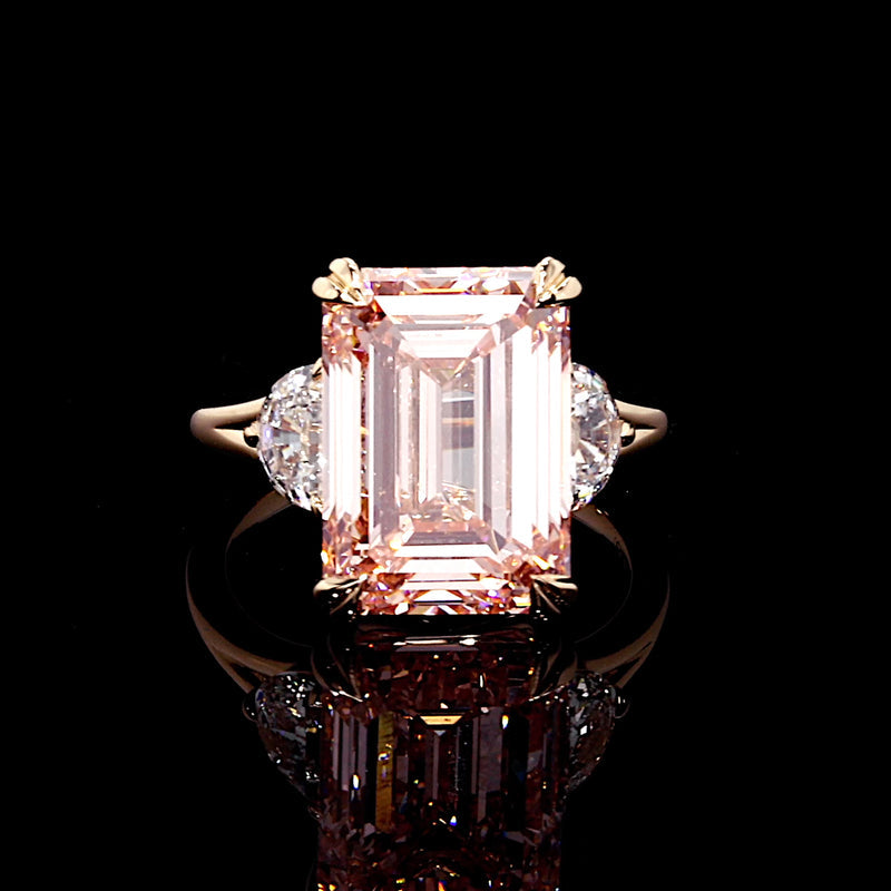 High Jewelry | Jane Emerald Cut Pink Diamond Three Stone Engagement Ring
