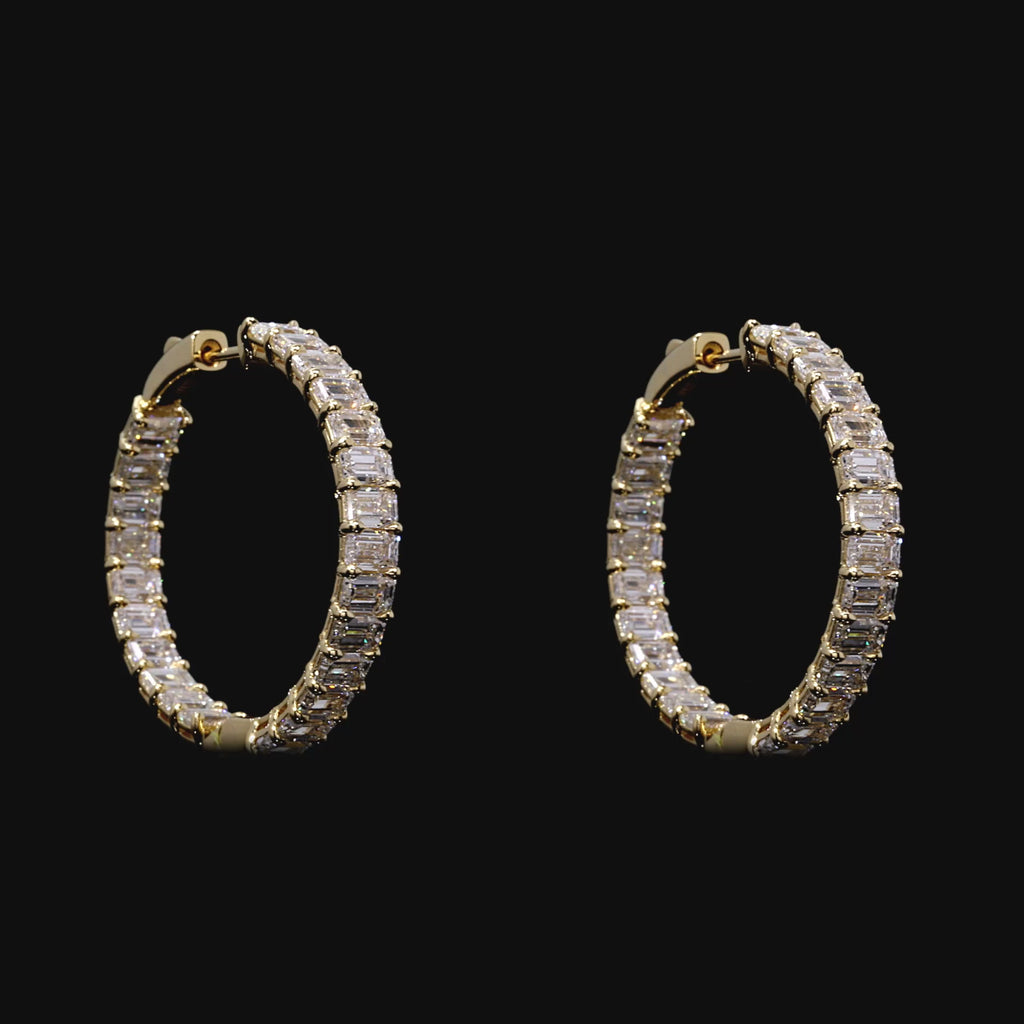 Olivia Lab Diamond Bold Inside Out Hoops 18k Yellow Gold Emerald Pair